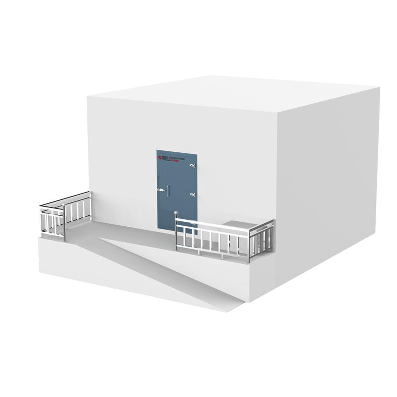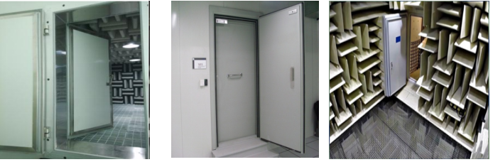 隔音门由内外两套门组成,外门用于隔声,内门用于吸声。通外门是向外开,内门向内开 ,内门贴吸音尖劈,门开口尺寸:1. 2M*2M。施工效果如图。