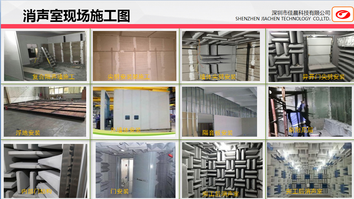 1. 消声室外部尺寸:长9M*宽6M*高5M